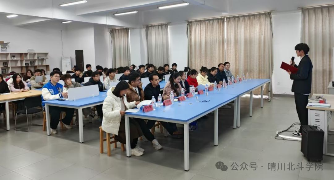 参与本次比赛的12位评委老师分别是:翟月英院长,曾蓉老师,阴欢欢老师,孔祥明老师,张小慧老师,沈琪老师,北斗学院党总支书记漆良军老师,团总支书记李晓嫚老师,辅导员石一千老师,阳军老师,韩晓妹老师,钱晓东老师。各参赛小组依次登台,在规定时间内面向评委演示作品。同学们自信操作,现场展示各自作品的各项功能与特色,并清晰介绍了设计思路与技术实现方法。评委们全程认真观看,点评,从灯光效果到电路布局,从创新性到作品完整度,进行了全面考察。环节组织有序,展现出同学们将理论知识转化为实际应用的扎实能力。