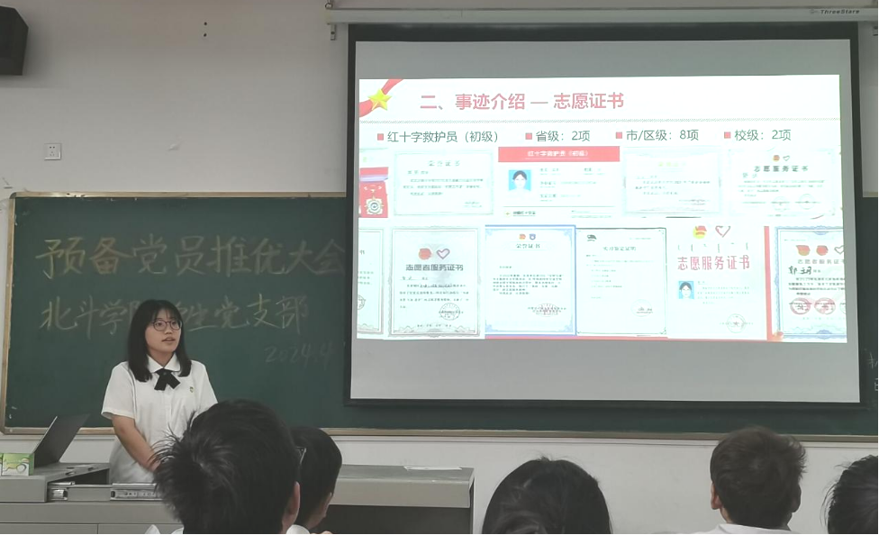 为进一步学习贯彻习近平新时代中国特色社会主义思想主题教育,鼓励青年紧跟党的号召,学习先辈们顽强不屈的革命精神。北斗学院学生党支部于4月24日在教1-308教室召开四月党员大会暨主题党日活动。此次大会由北斗学院学生党支部书记张婉莹同志主持,北斗学院党总支副书记漆良军同志、辅导员岳檄文同志、阳军同志、黄山同志、学生党员及发展对象等数名同学参会。