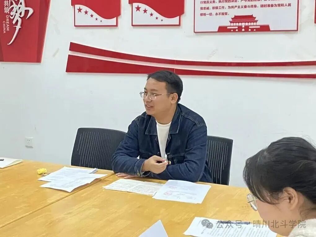 为深入学习贯彻党的创新理论,进一步提升发展对象的政治素养与思想觉悟,锤炼其党性修养与担当精神,同时引导广大青年学子在复杂多元的社会现象中保持清醒头脑、树立正确奋斗观,北斗学院于 10 月 22 日下午 15 点 30 分在综 1-203 成功举办了第 15 期发展对象微党课演讲实践活动暨《如何理性看待身边的 “躺平” 与 “内卷”》专题讨论课。本次大会由北斗学院党总支书记漆良军老师和学生党支部书记阳军老师共同主持,北斗学院第十五期全体发展对象参与。